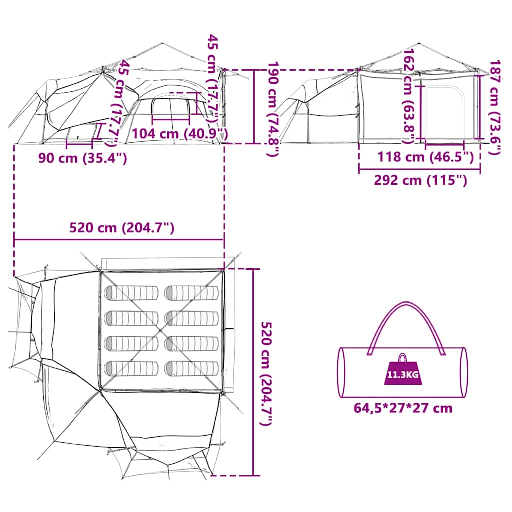 - Lieferumfang: 1 x Innenzel, 2 x FRP-Stange(482 cm), 4 x Spannseil(250 cm), 1 x Spannseil(150 cm), 20 x Erdnagel, 1 x Tragetasche