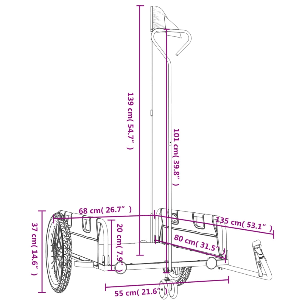 Dieser vielseitige und robuste Fahrradanhänger ist dank seiner maximalen Zuladung von 45 kg ideal für den Transport schwerer Güter. Robustes Material: Eisen ist ein starkes und hartes Material. Im Industrie- und Möbelbau ist es sehr geschätzt. Dieser Fahrrad-Lastenanhänger aus Eisen ist sehr robust und langlebig. Praktisches Design: Dieser Fahrrad-Lastenanhänger mit einer maximalen Tragfähigkeit von 45 kg ist perfekt für den Transport von schweren Gütern wie Gepäck, Pflanzen, Werkzeug oder Lebensmitteln. Cleveres Design: Der Fahrradanhänger hat eine Deichsel, mit der er leicht an ein Fahrrad angeschlossen werden kann. Gleichzeitig ist eine Sicherheitsflagge für zusätzliche Sichtbarkeit angebracht.