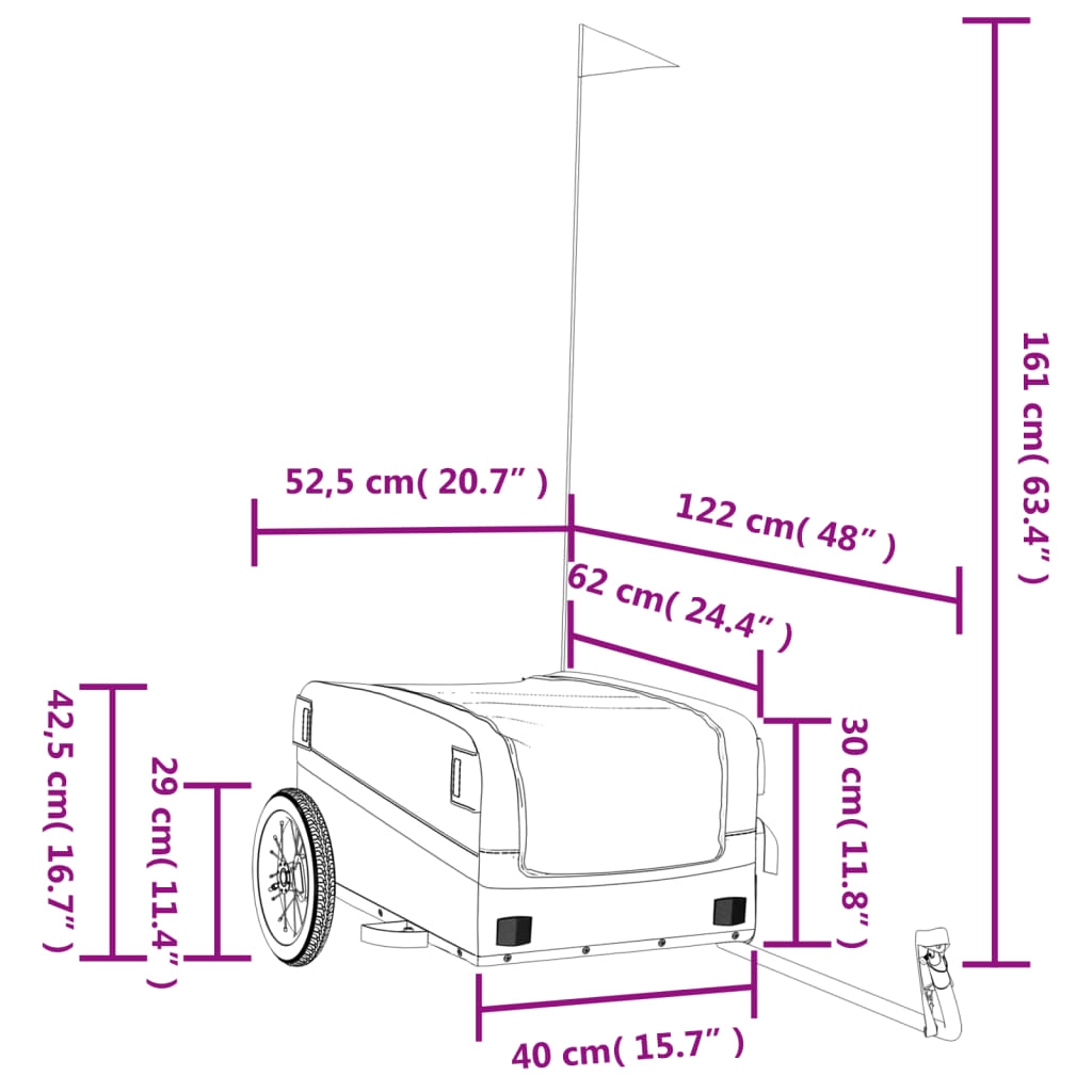 Dieser vielseitige und robuste Fahrradanhänger ist dank seiner maximalen Zuladung von 30 kg ideal für den Transport schwerer Güter. Robustes Material: Eisen ist ein starkes und hartes Material. Im Industrie- und Möbelbau ist es sehr geschätzt. Dieser Fahrrad-Lastenanhänger aus Eisen ist sehr robust und langlebig.Praktisches Design: Dieser Fahrrad-Lastenanhänger mit einer maximalen Tragfähigkeit von 30 kg ist perfekt für den Transport von schweren Gütern wie Gepäck, Pflanzen, Werkzeug oder Lebensmitteln.Cleveres Design: Der Fahrradanhänger hat eine Deichsel, mit der er leicht an ein Fahrrad angeschlossen werden kann. Gleichzeitig ist eine Sicherheitsflagge für zusätzliche Sichtbarkeit angebracht.