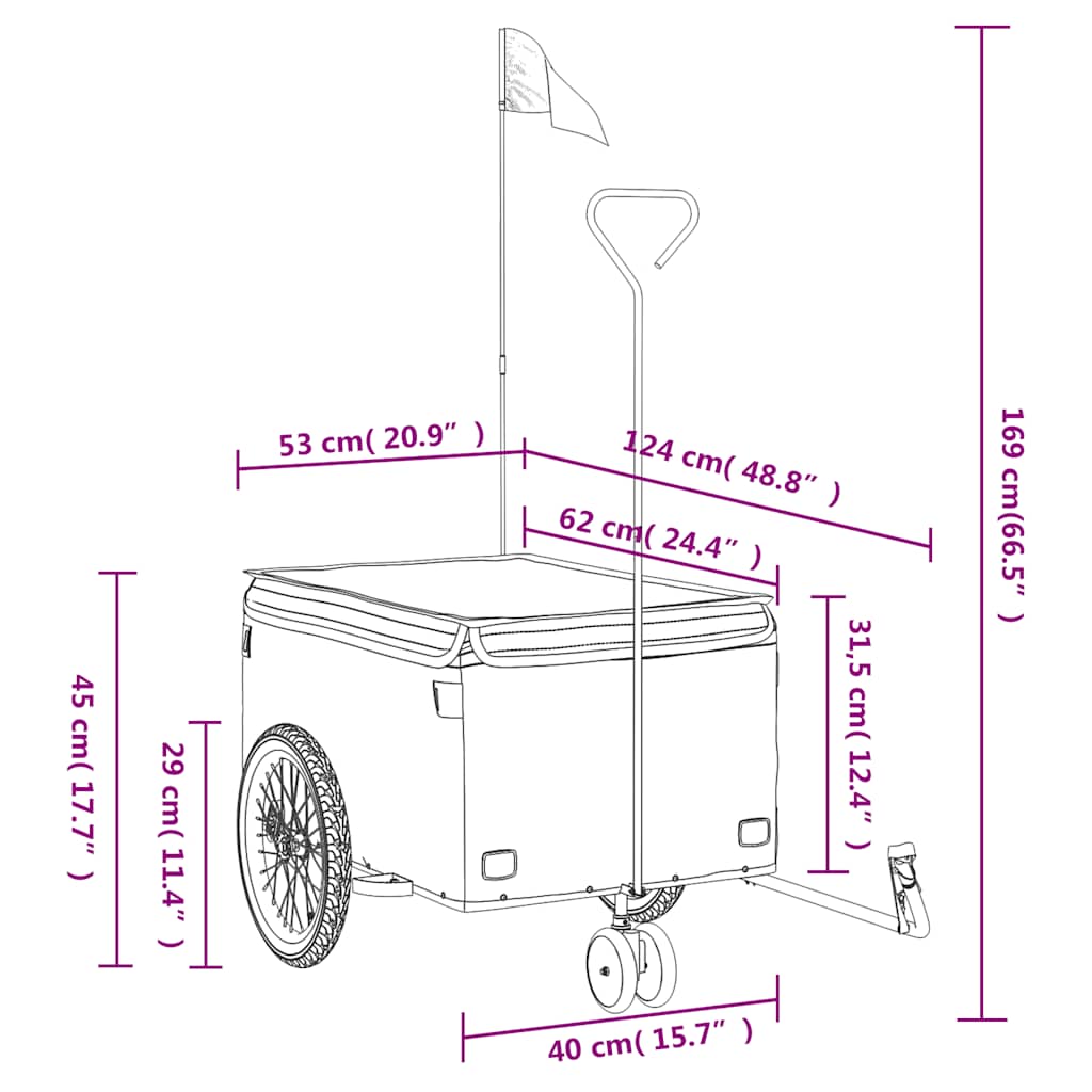 Dieser vielseitige und robuste Fahrradanhänger ist dank seiner maximalen Zuladung von 30 kg ideal für den Transport schwerer Güter. Robustes Material: Eisen ist ein starkes und hartes Material. Im Industrie- und Möbelbau ist es sehr geschätzt. Dieser Fahrrad-Lastenanhänger aus Eisen ist sehr robust und langlebig.Praktisches Design: Dieser Fahrrad-Lastenanhänger mit einer maximalen Tragfähigkeit von 30 kg ist perfekt für den Transport von schweren Gütern wie Gepäck, Pflanzen, Werkzeug oder Lebensmitteln.Cleveres Design: Der Fahrradanhänger hat eine Deichsel, mit der er leicht an ein Fahrrad angeschlossen werden kann. Gleichzeitig ist eine Sicherheitsflagge für zusätzliche Sichtbarkeit angebracht.