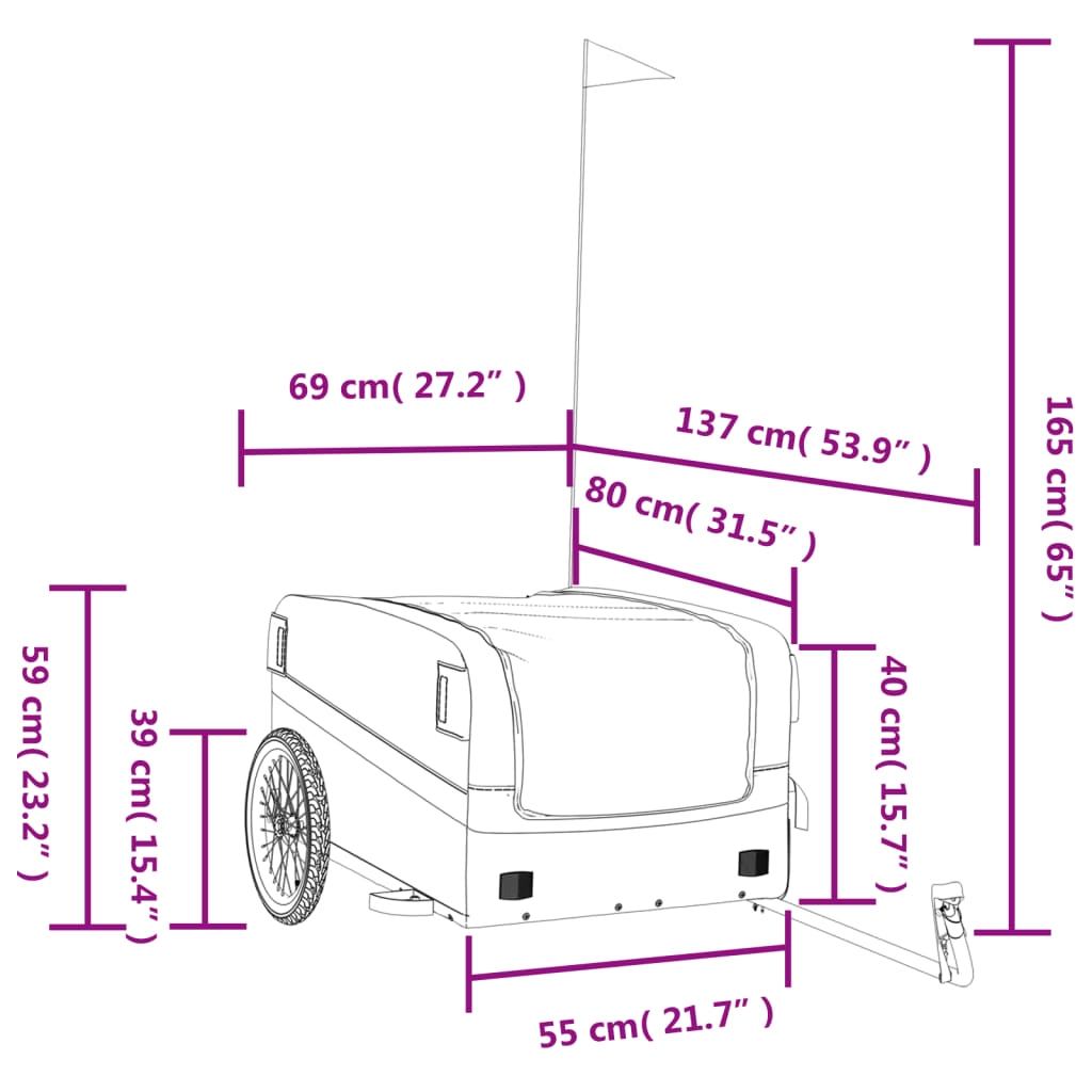 Dieser vielseitige und robuste Fahrradanhänger ist dank seiner maximalen Zuladung von 45 kg ideal für den Transport schwerer Güter. Robustes Material: Eisen ist ein starkes und hartes Material. Im Industrie- und Möbelbau ist es sehr geschätzt. Dieser Fahrrad-Lastenanhänger aus Eisen ist sehr robust und langlebig.Praktisches Design: Dieser Fahrrad-Lastenanhänger mit einer maximalen Tragfähigkeit von 45 kg ist perfekt für den Transport von schweren Gütern wie Gepäck, Pflanzen, Werkzeug oder Lebensmitteln.Cleveres Design: Der Fahrradanhänger hat eine Deichsel, mit der er leicht an ein Fahrrad angeschlossen werden kann. Gleichzeitig ist eine Sicherheitsflagge für zusätzliche Sichtbarkeit angebracht.