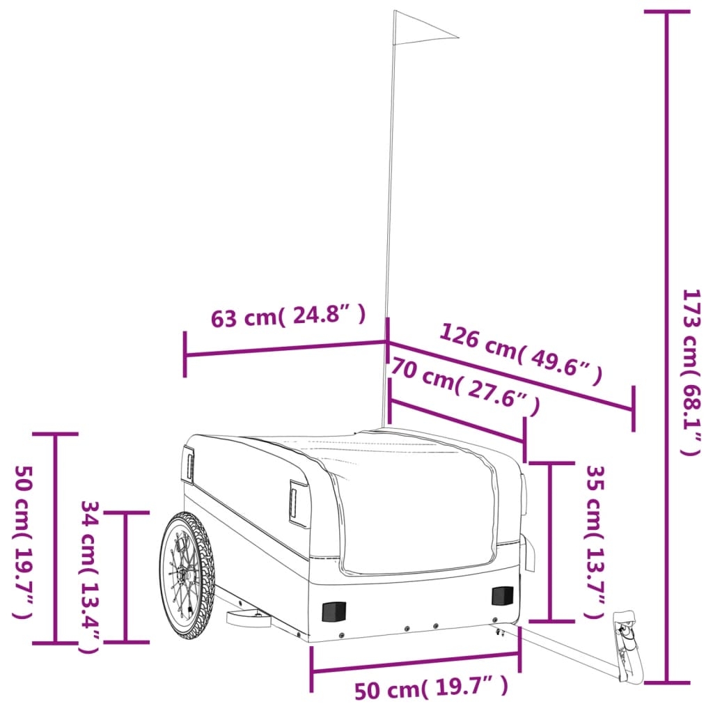 Dieser vielseitige und robuste Fahrradanhänger ist dank seiner maximalen Zuladung von 45 kg ideal für den Transport schwerer Güter. Robustes Material: Eisen ist ein starkes und hartes Material. Im Industrie- und Möbelbau ist es sehr geschätzt. Dieser Fahrrad-Lastenanhänger aus Eisen ist sehr robust und langlebig.Praktisches Design: Dieser Fahrrad-Lastenanhänger mit einer maximalen Tragfähigkeit von 45 kg ist perfekt für den Transport von schweren Gütern wie Gepäck, Pflanzen, Werkzeug oder Lebensmitteln.Cleveres Design: Der Fahrradanhänger hat eine Deichsel, mit der er leicht an ein Fahrrad angeschlossen werden kann. Gleichzeitig ist eine Sicherheitsflagge für zusätzliche Sichtbarkeit angebracht.