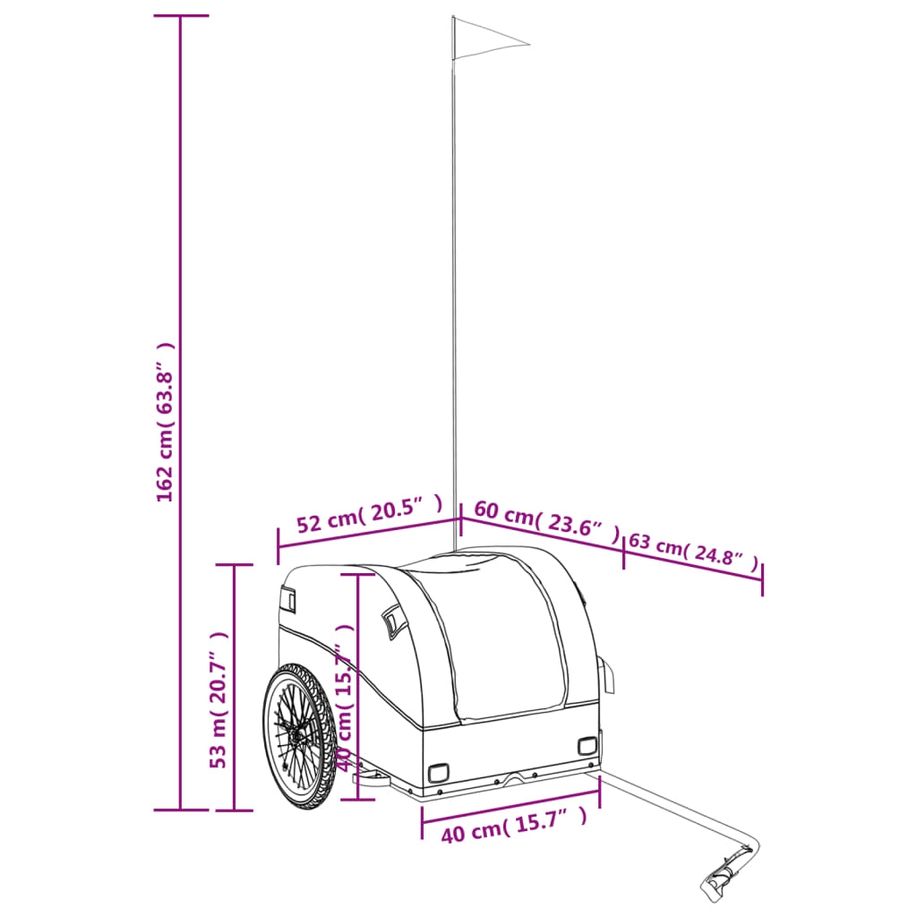 Dieser vielseitige und robuste Fahrradanhänger ist dank seiner maximalen Zuladung von 30 kg ideal für den Transport schwerer Güter. Robustes Material: Eisen ist ein starkes und hartes Material. Im Industrie- und Möbelbau ist es sehr geschätzt. Dieser Fahrrad-Lastenanhänger aus Eisen ist sehr robust und langlebig.Praktisches Design: Dieser Fahrrad-Lastenanhänger mit einer maximalen Tragfähigkeit von 30 kg ist perfekt für den Transport von schweren Gütern wie Gepäck, Pflanzen, Werkzeug oder Lebensmitteln.Cleveres Design: Der Fahrradanhänger hat eine Deichsel, mit der er leicht an ein Fahrrad angeschlossen werden kann. Gleichzeitig ist eine Sicherheitsflagge für zusätzliche Sichtbarkeit angebracht.