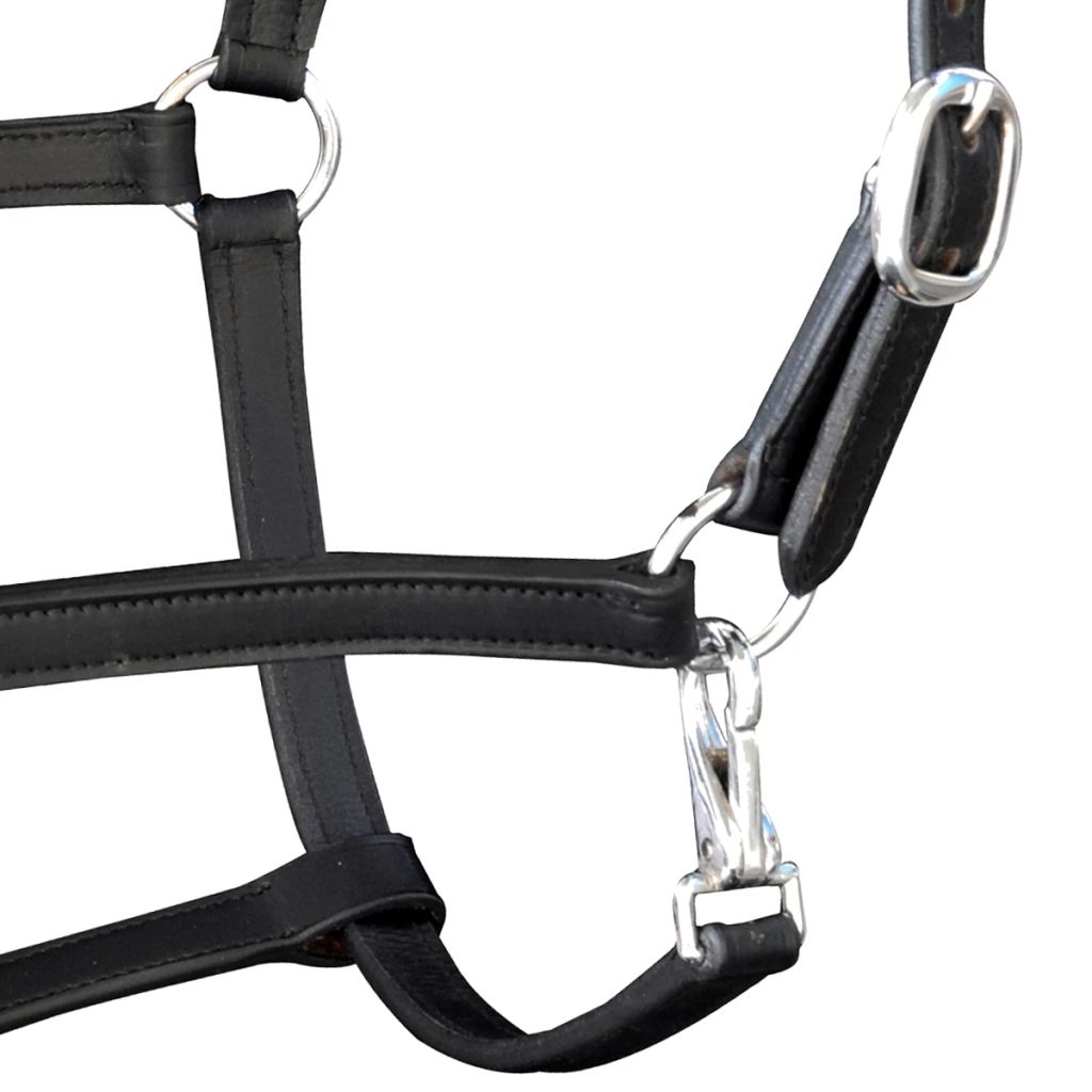 Dieses Halfter, aus hochwertigem Büffelleder gefertigt, ist leicht verstellbar und hat ein elegantes Design. Dieses Halfter ist extra weich gepolstert am Hals und Nasenriemen für einen angenehmen Tragekomfort. Die Schnalle am Kopf und der Clip an der Kehle sind einstellbar. Dank des Kehlriemens sieht dieses Halfter nicht nur gut aus, sondern sorgt auch für zusätzliche Sicherheit.